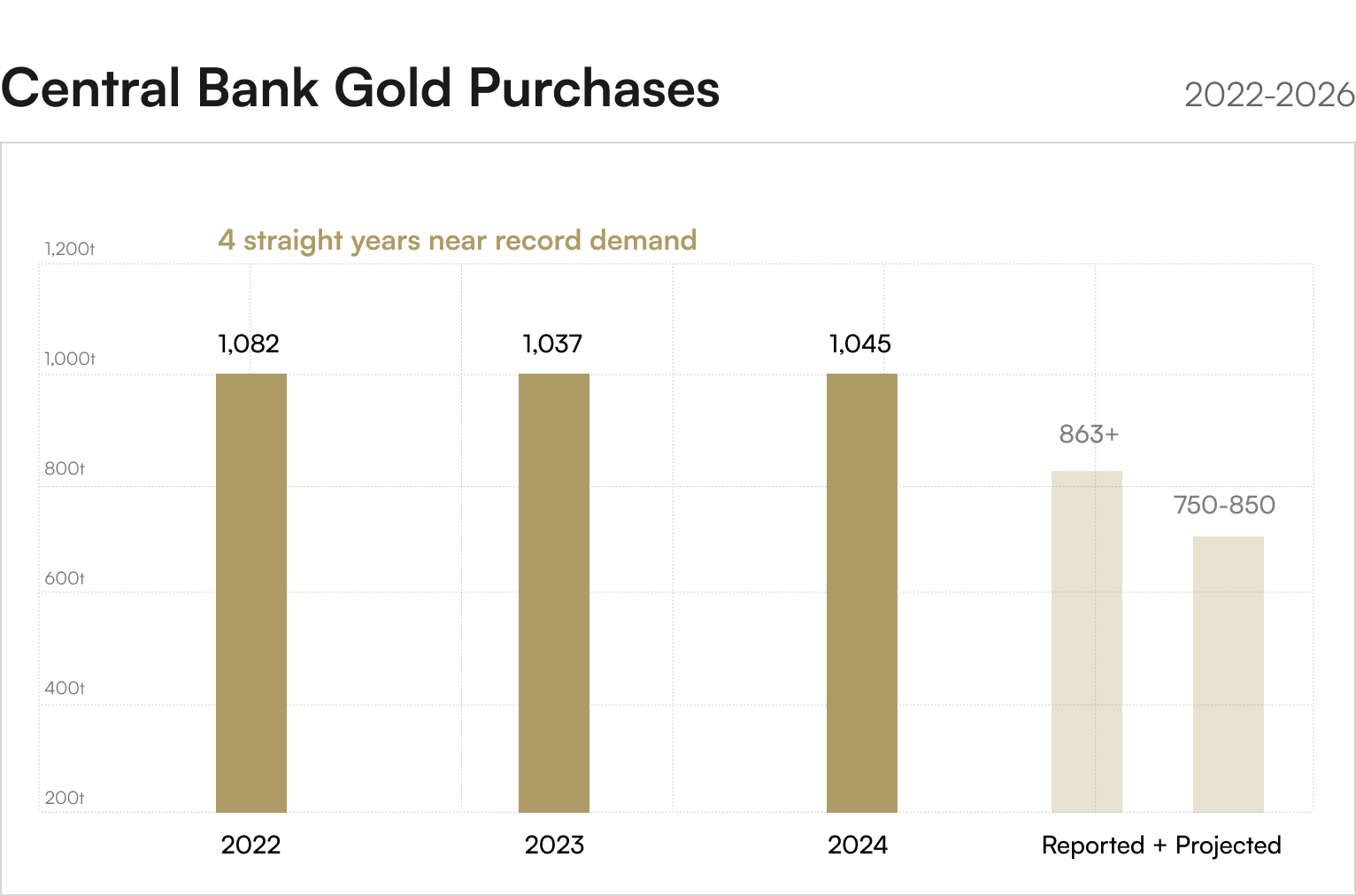 The 755-tonne central bank purchase projection for 2026 reflects structural reserve diversification decisions made over multi-year planning horizons. Poland's explicit target of 20% gold in national reserves, China's 16-month buying streak, Uzbekistan emerging as the largest buyer in January 2026 — these are not momentum trades. They are permanent shifts in sovereign reserve architecture. This demand absorbs 25% of annual mine supply before retail investors buy a single coin.