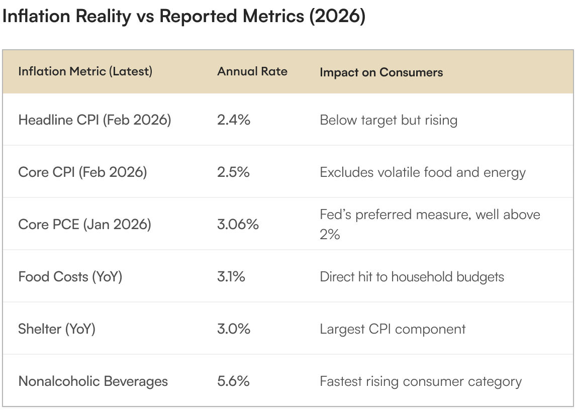The March Summary of Economic Projections delivered a devastating revision. The Fed slashed its 2026 GDP growth forecast to just 0.9%, down sharply from prior estimates near 2.0%. Simultaneously, inflation projections were revised upward due to the energy shock emanating from the Iran war and the ongoing tariff regime. The latest Bureau of Labor Statistics data showed headline CPI at 2.4% year over year, with core CPI at 2.5%. However, the categories that directly impact American households are running far hotter: food costs surged 3.1%, shelter rose 3.0%, and nonalcoholic beverages spiked a stunning 5.6%. The Dallas Fed’s trimmed mean PCE inflation sat at 3.06% on a 12 month basis as of January, well above the Fed’s 2% target.